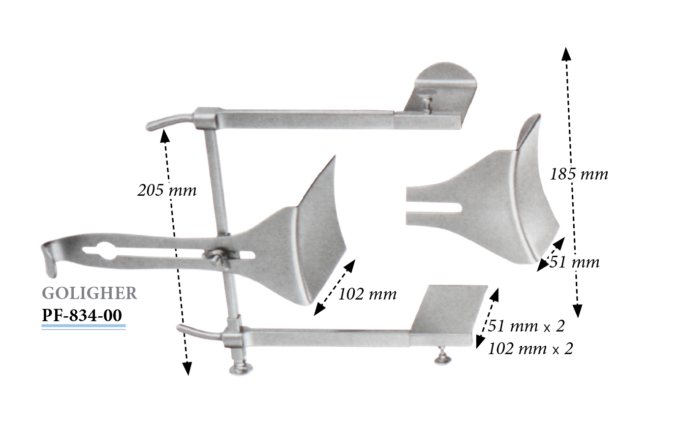 PF-834-00 Goligher hasfal terpesztő, komplett, 185 mm
