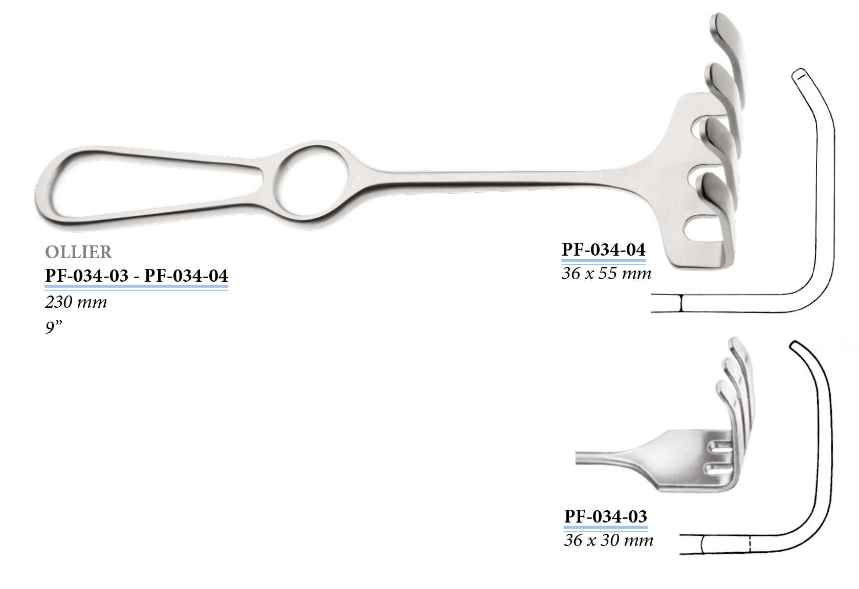 PF-034-04 Ollier sebkampó, 4 ágú, tompa, 230 mm