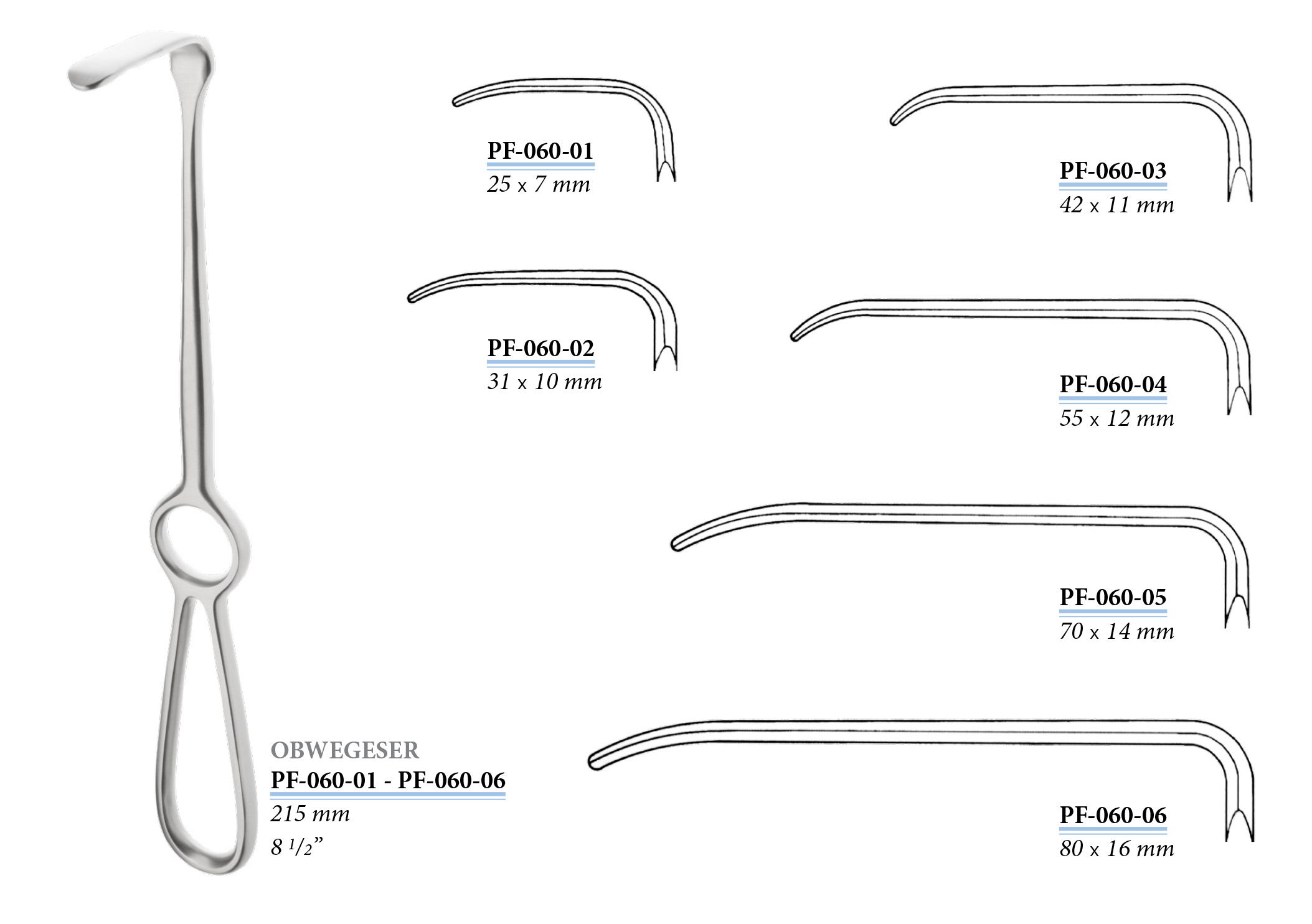 PF-060-05 Obwegeser sebkampó, 70x14 mm, 215 mm