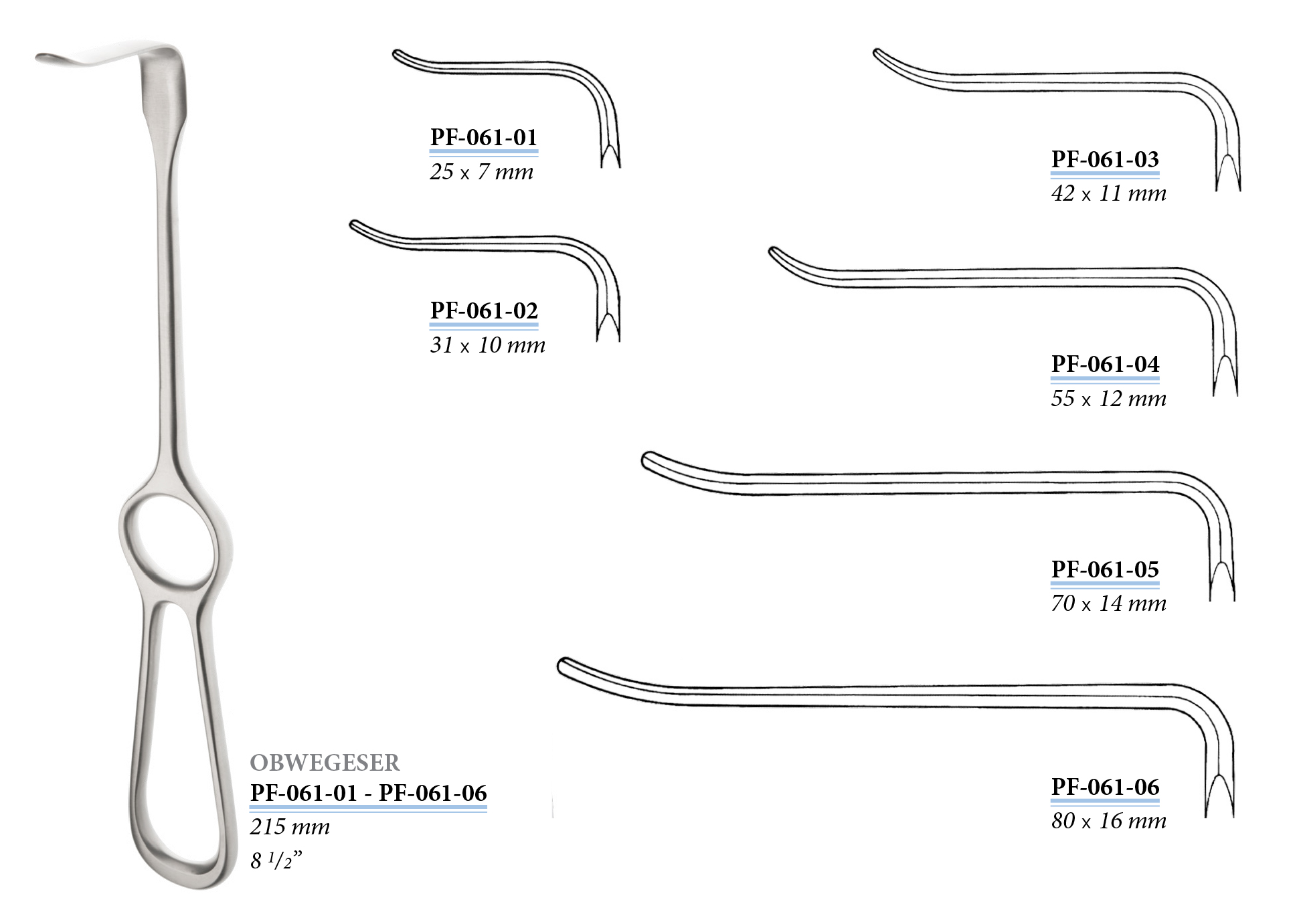 PF-061-06 Obwegeser sebkampó, 80x16 mm, 215 mm