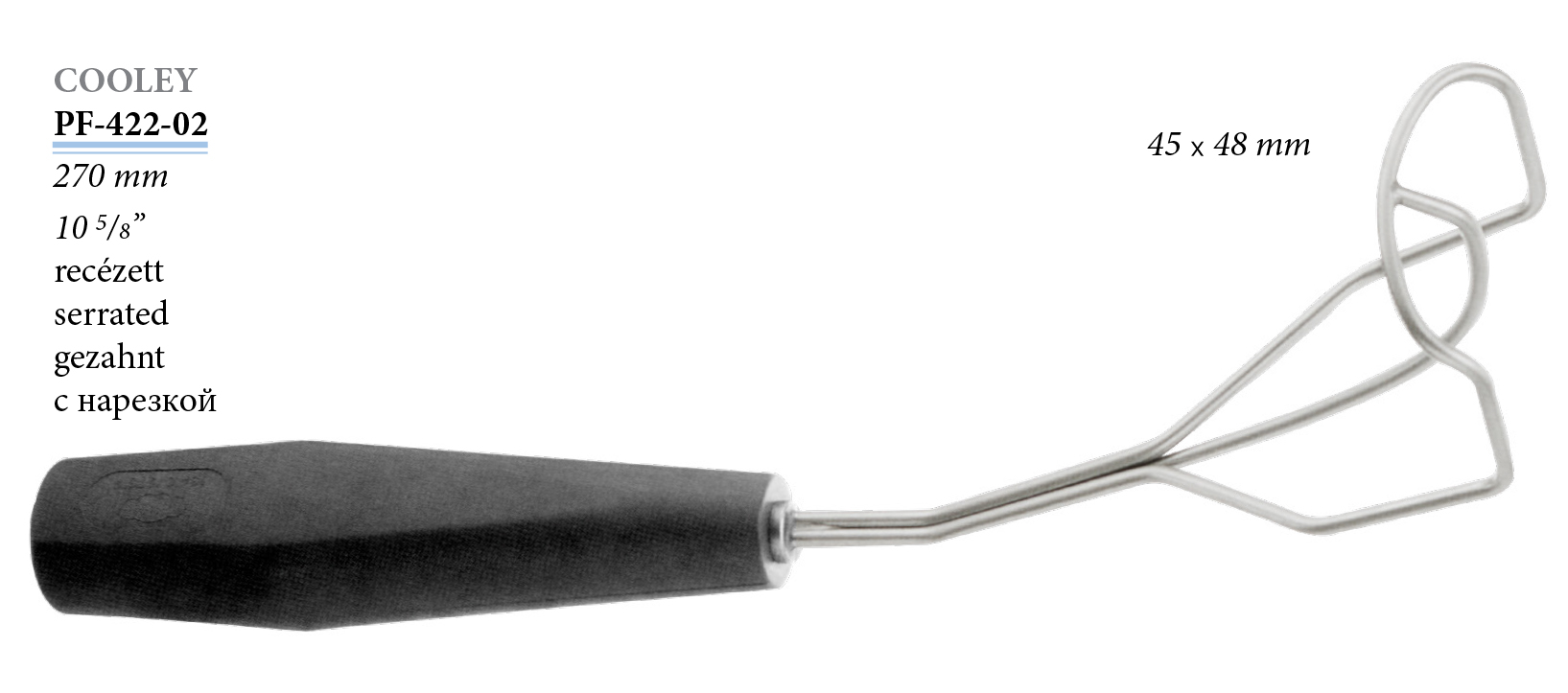 PF-422-02 Cooley tüdőlapoc, jobboldali, recézett, 45x48 mm, 270 mm