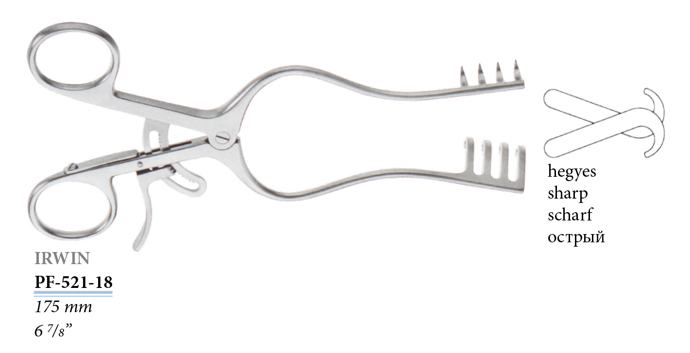 PF-714-27 Laminektomiás sebterpesztő, 6x6 ágú, hegyes, 280 mm