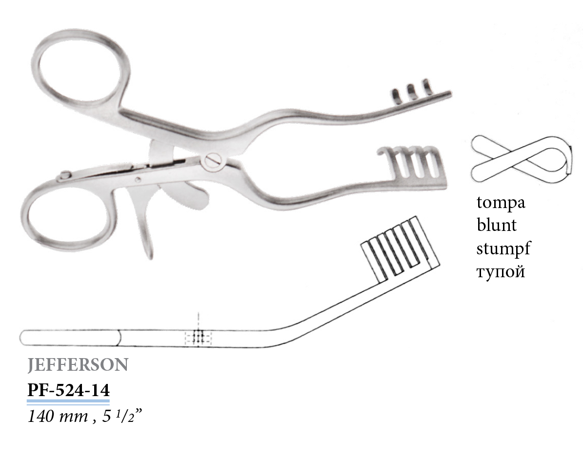 PF-524-14 Jefferson sebterpesztő, 3x4 ágú, tompa, hajlított, 140 mm