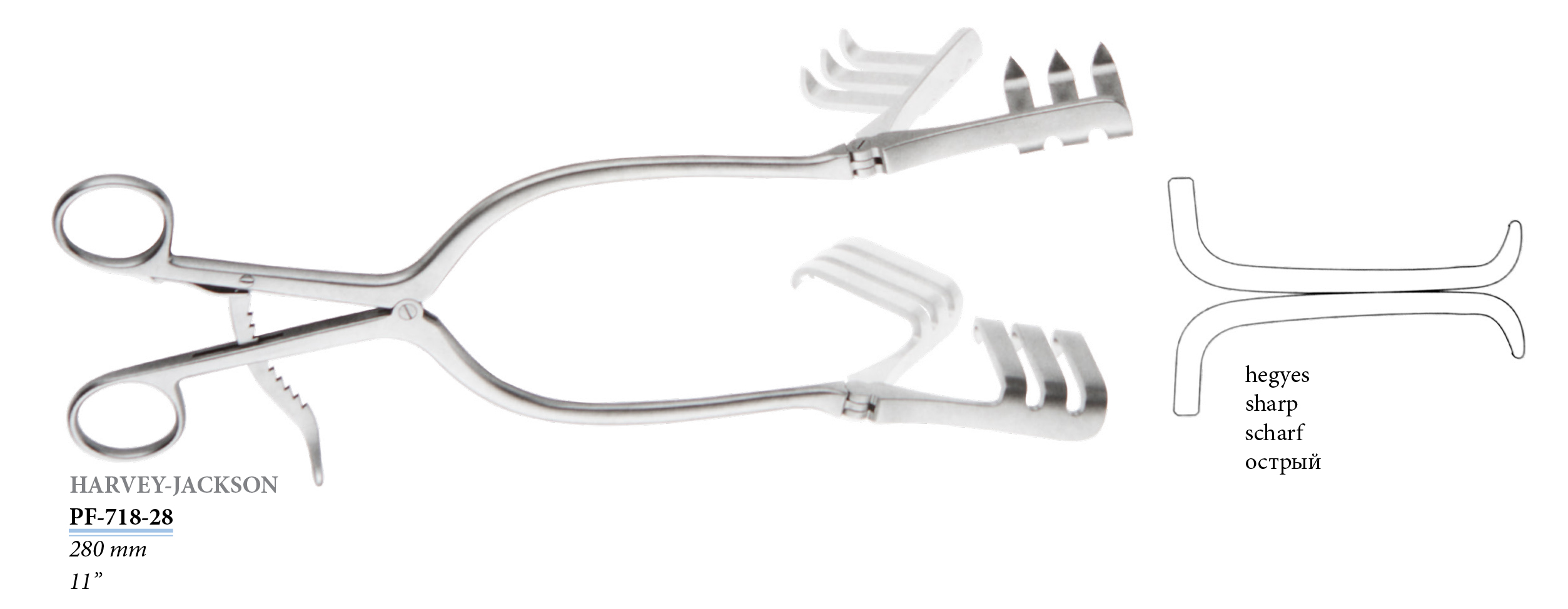 PF-718-28 Harvey-Jackson sebterpesztő, 3x3 ágú, hegyes, 280 mm