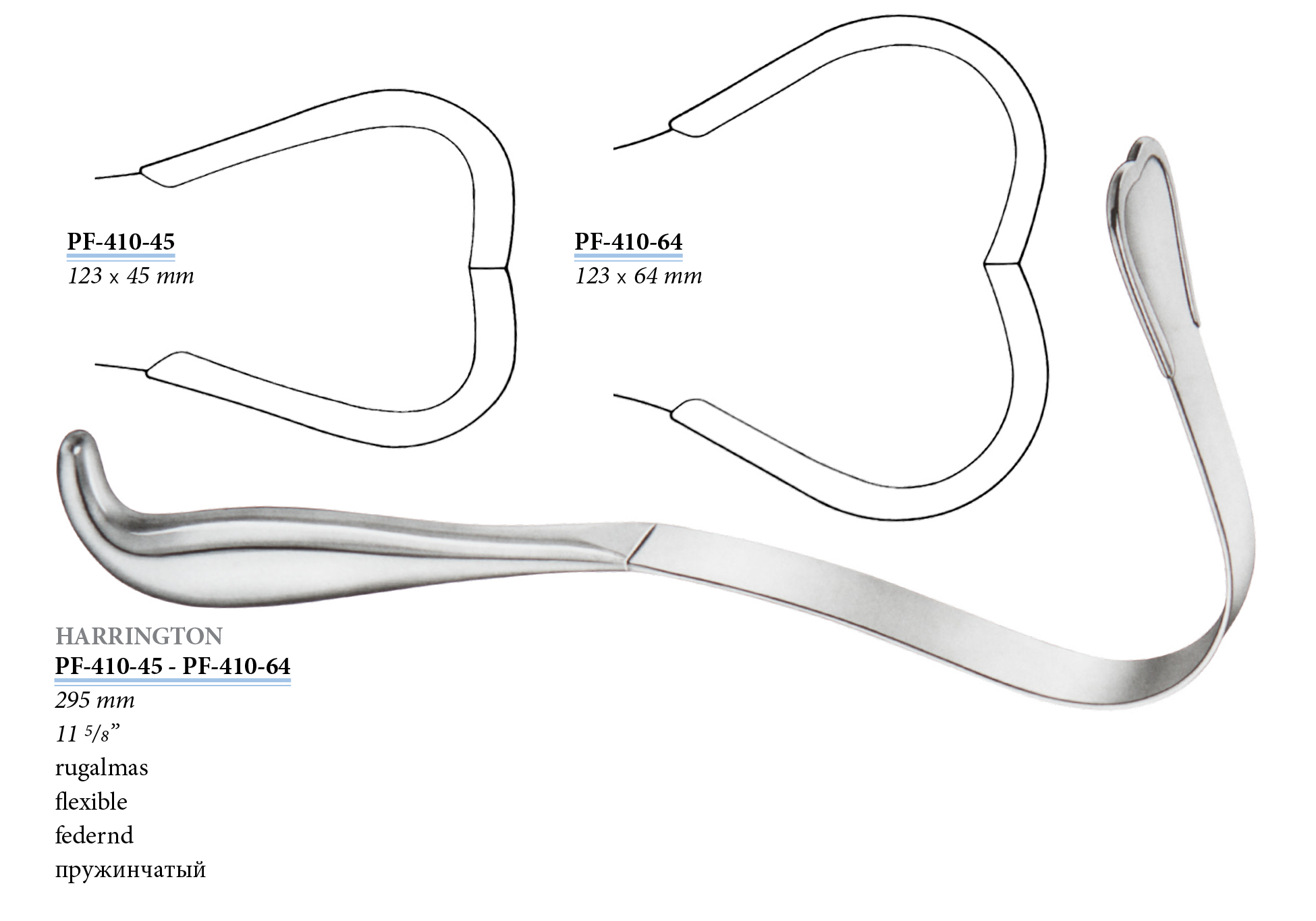 PF-410-45 Harrington tüdőlapoc, rugalmas, 123x45 mm, 295 mm