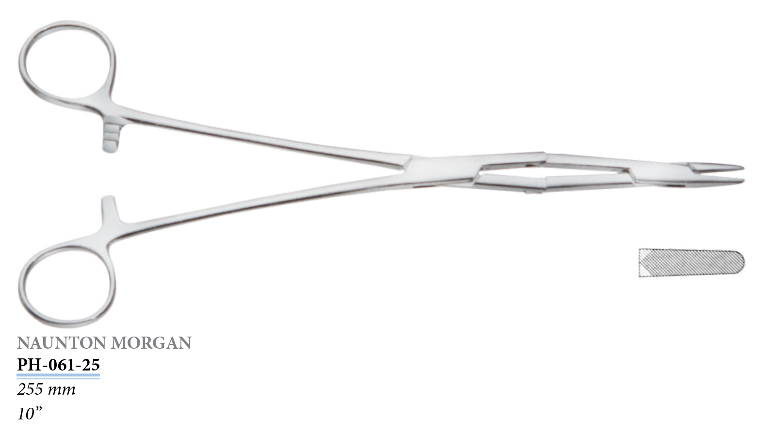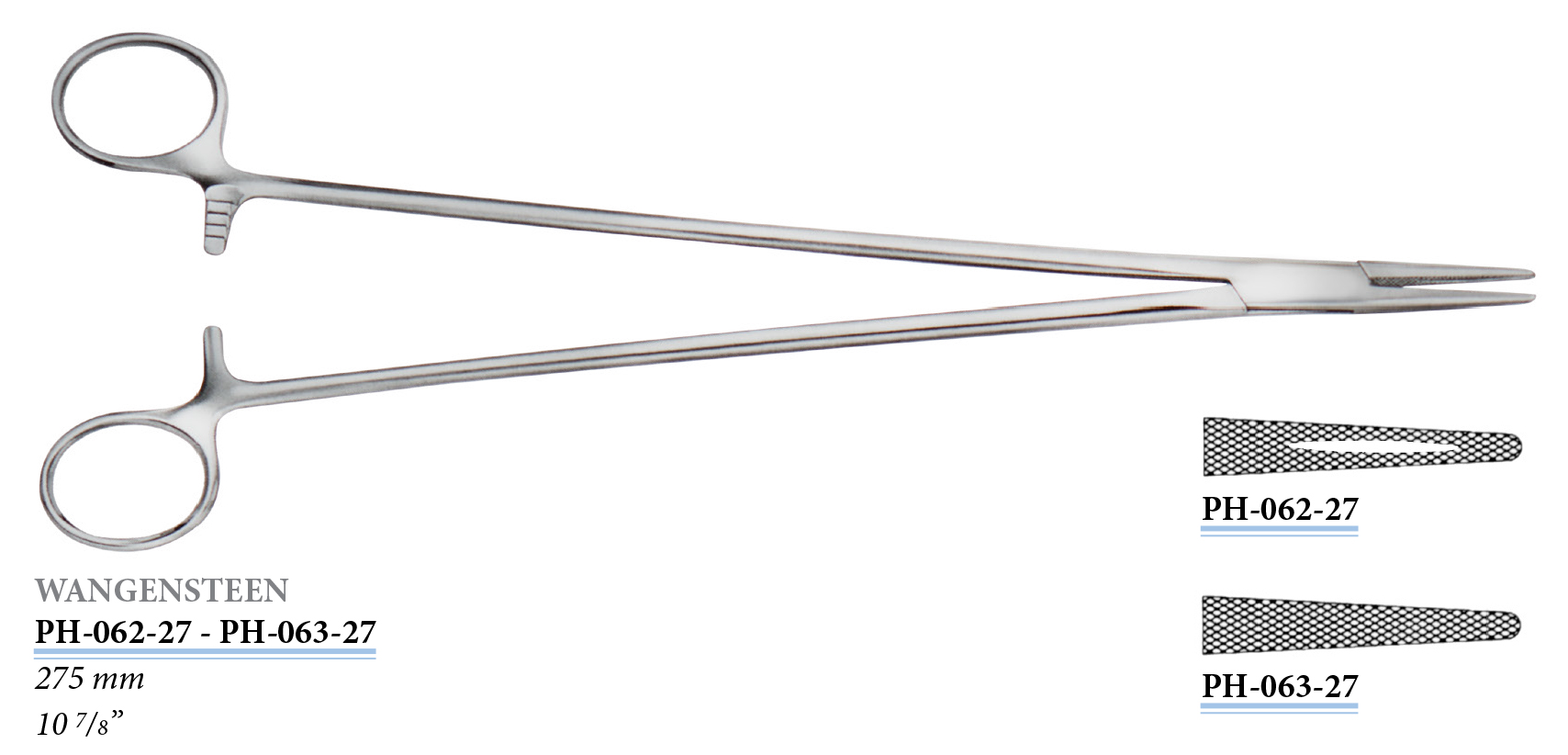 PH-062-27 Wangensteen tűfogó, vérhornyos pofával, 275 mm