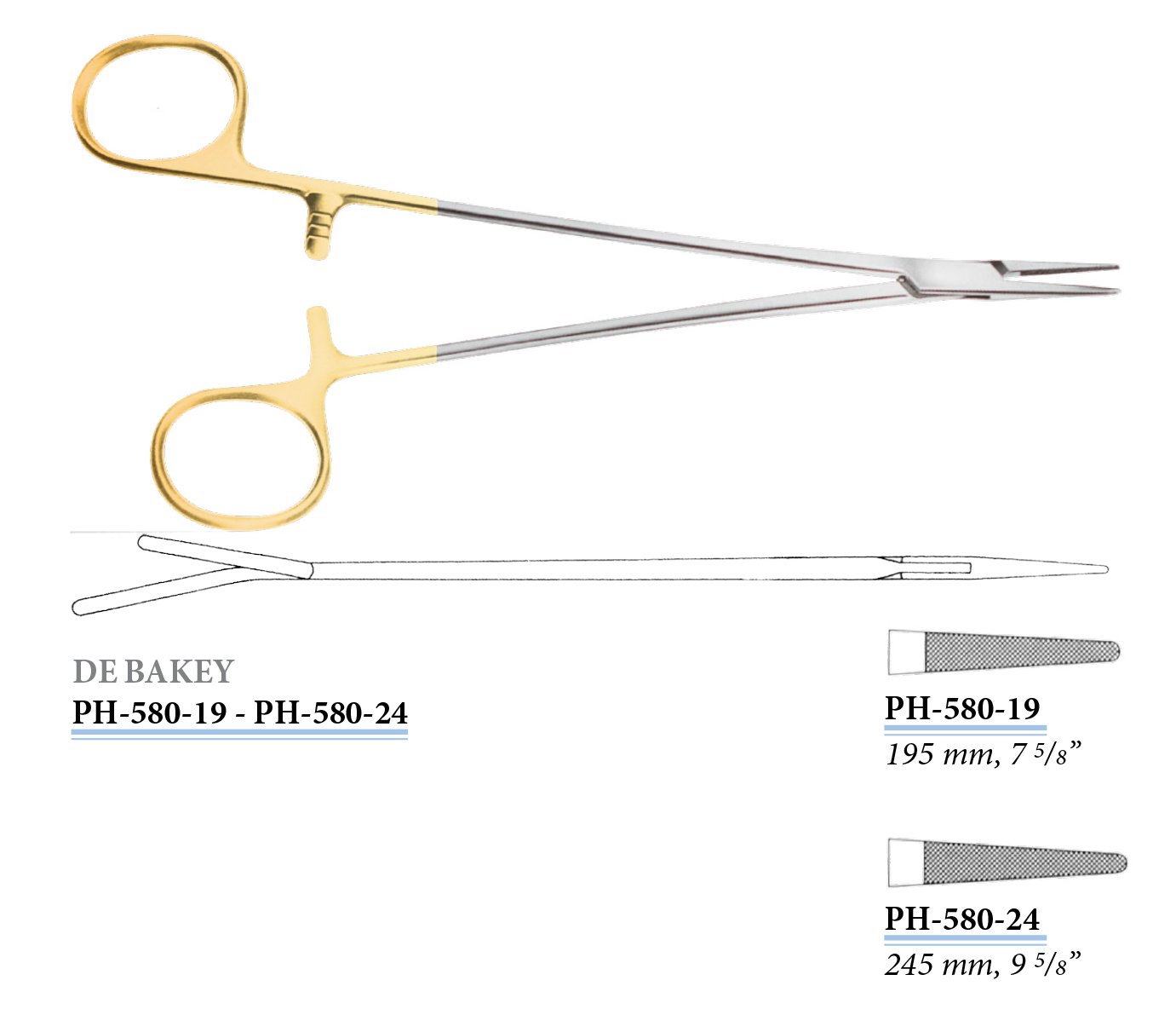 PH-580-19 DeBakey tűfogó, asszimmetrikus szár, keményfémbetétes, 195 mm