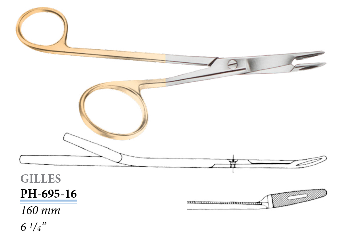 PH-695-16 Gillies tűfogó ollóval, jobbkezes, keményfémbetétes, 160 mm