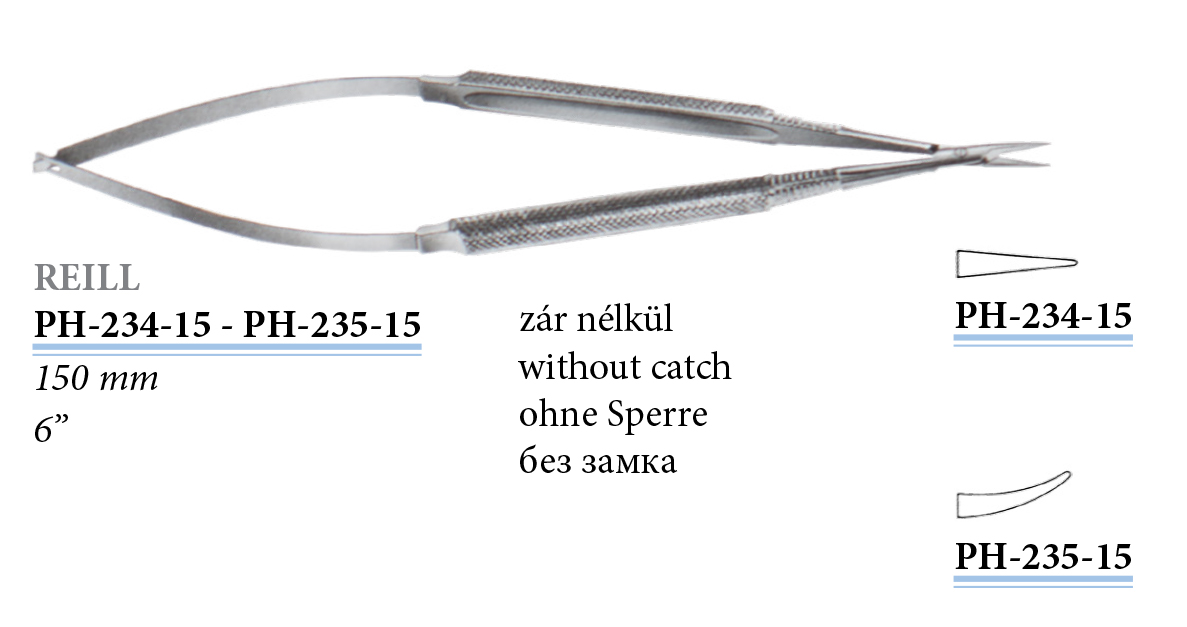 PH-235-15 Reill mikro tűfogó, hajlított, 150 mm