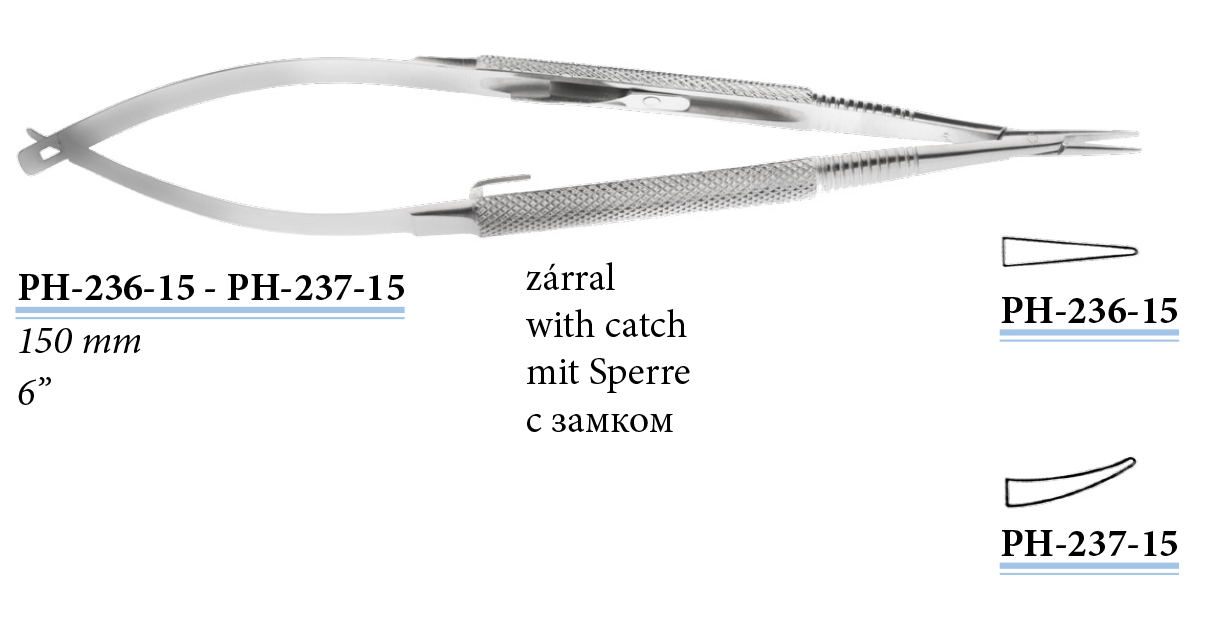 PH-236-15 Mikro tűfogó, zárral, egyenes, 150 mm