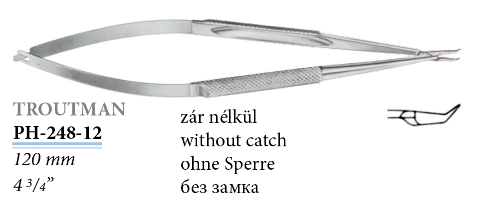 PH-248-12 Troutman mikro tűfogó, zár nélkül, hajlított, 120 mm