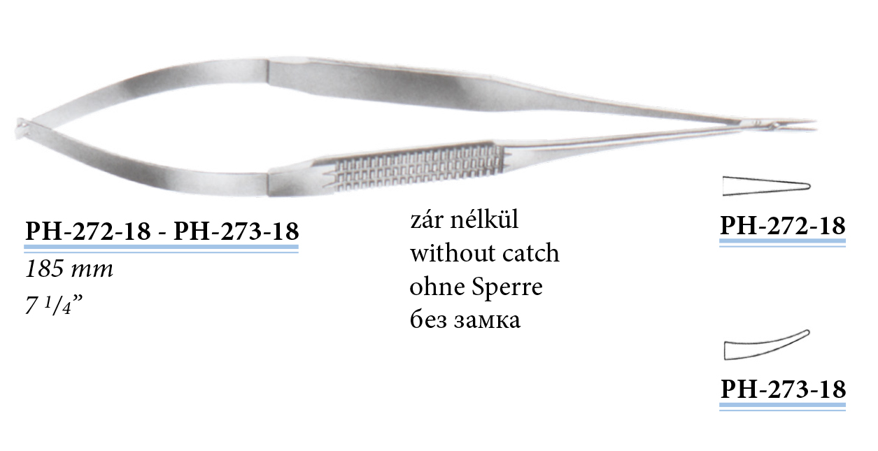 PH-272-18 Mikro tűfogó, zár nélkül, egyenes, 185 mm