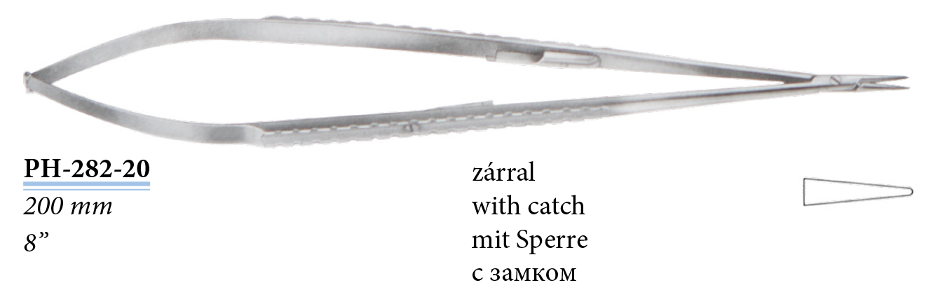 PH-282-20 Mikro tűfogó, zárral, egyenes, 200 mm