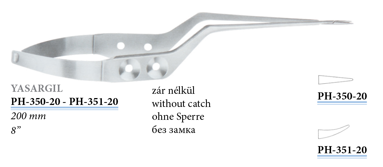 PH-351-20 Yasargil mikro tűfogó, hajlított, 200 mm