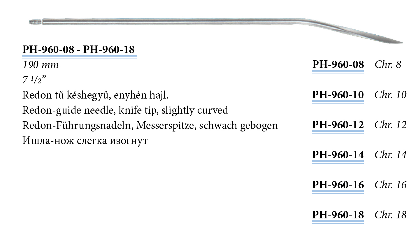 PH-960-10 Redon tű, késhegyű, enyhén hajlított, fig.10, 190 mm