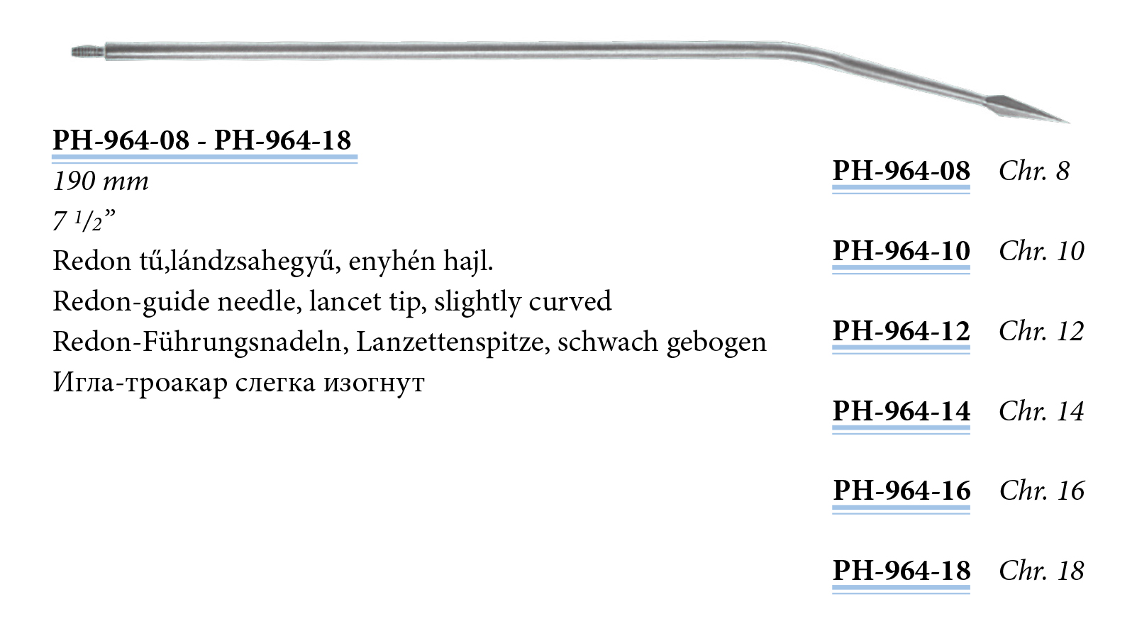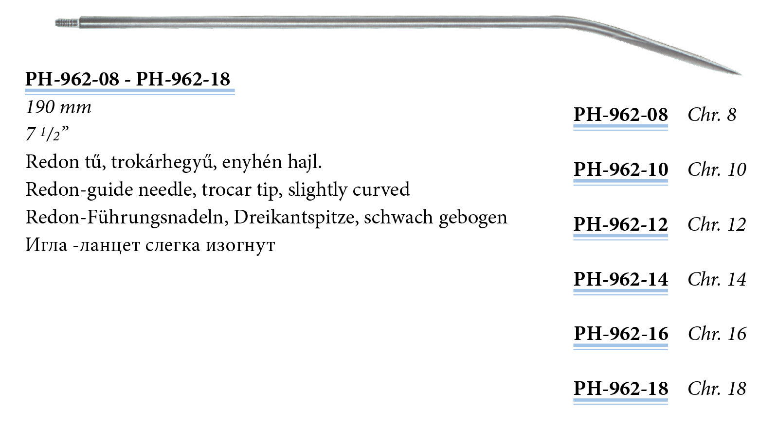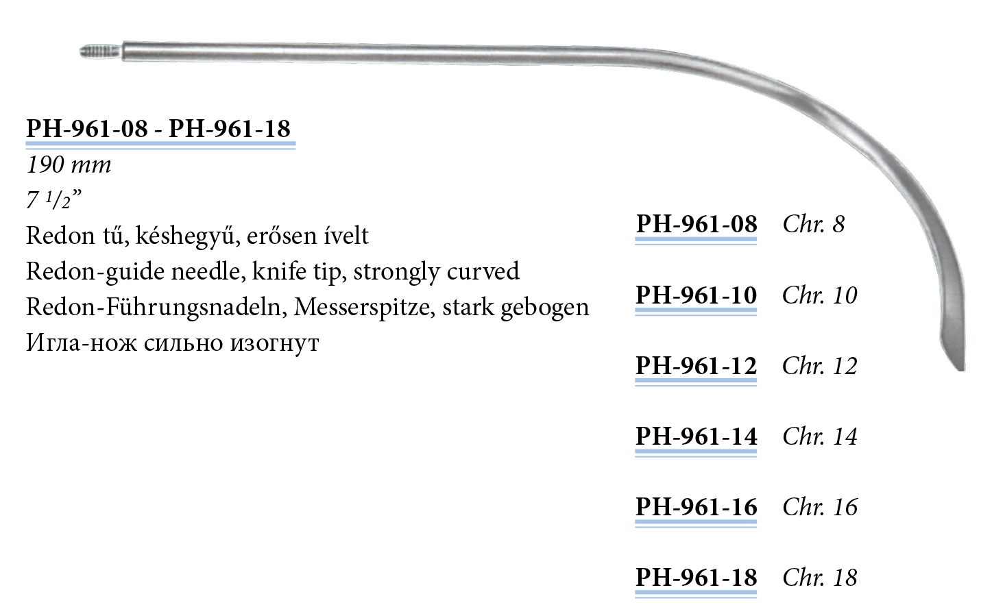 PH-962-12 Redon tű, trokárhegyű, enyhén hajlított, fig.12, 190 mm