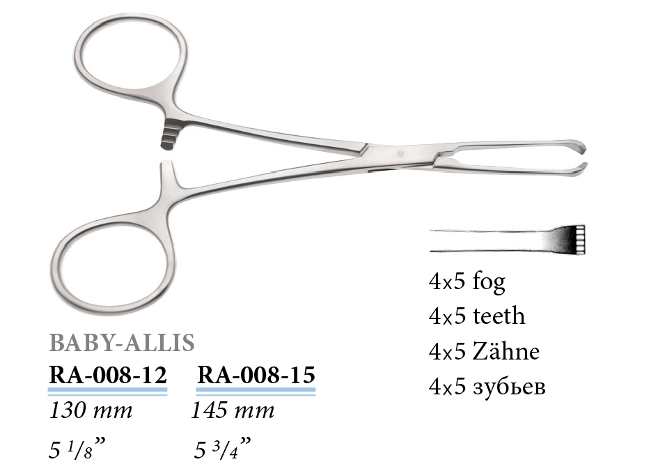 RA-008-12 Baby-Allis szövet - és szervfogó, 4x5 foggal, 130 mm