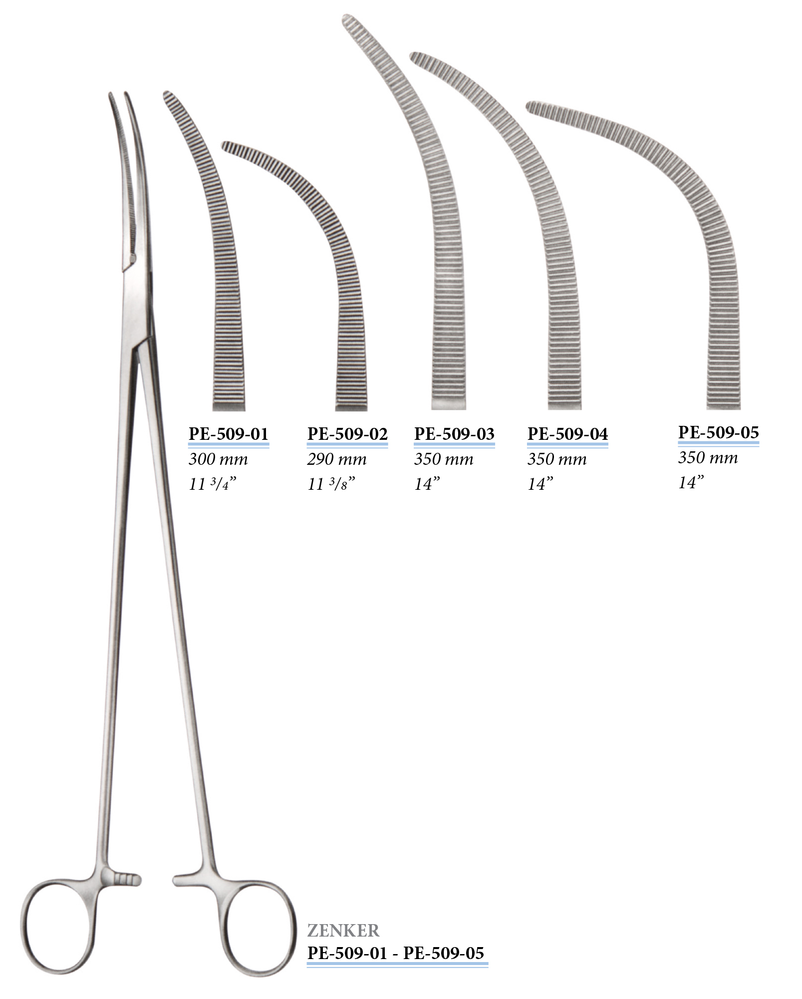 PE-509-05 Zenker preparáló fogó, hajlított, 350 mm